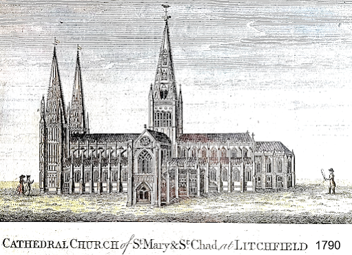 If the current cathedral was built on or around a previous Norman cathedral it would be expected to have a solid, bulky and buttressed layout. It would also be large with extensive grounds. It would present as formidable and powerful. In fact, it is almost the smallest of the medieval cathedrals. Seven of the 26 Norman cathedrals exceed 150 m in length and 8 exceed 120 m, whereas Lichfield is a mere 113 m long.